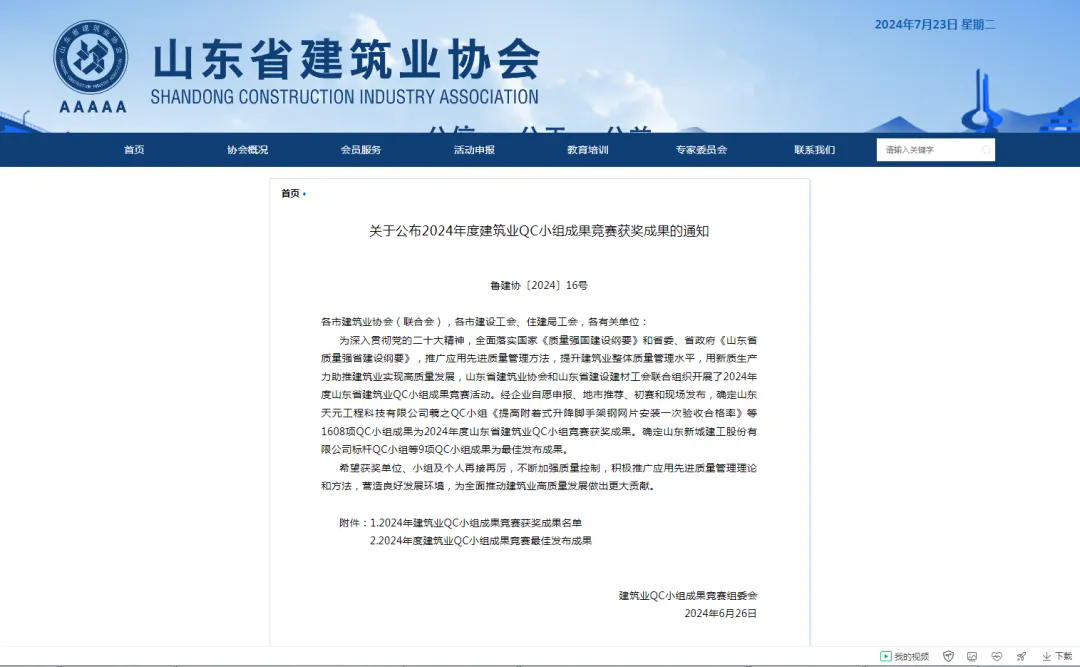 近日从山东省建筑业协会、山东省建设建材工会传来喜讯,集团开展的6项质量管理小组活动成果在2024年度山东省建筑业QC小组成果竞赛活动中获奖。截止到目前为止集团共获得国家级QC成果6项,省级QC成果22项,市级QC成果88项。
