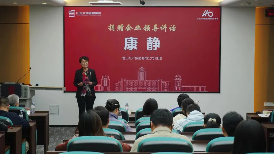 康静以校友身份分享了其回馈学院的感悟。她回顾了在管理学院的学习经历,学院老师们如何帮助她“认清时局、把握变局”,并强调了在变革环境中做出正确“选择”的重要性。她将此次捐赠视为一份“爱心的传递与期望”,希望能为山大学子创造更优质的学习环境,并鼓励更多校友未来能“走出校门创造价值,再走进校门赋能企业”,形成校友与学院相互支持、共同发展的良性循环。