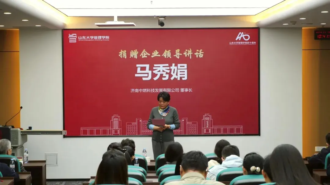 马秀娟在讲话中阐释了企业参与产教融合的实践路径。她表示,中燃科技与山东大学的合作已从单一的人才培训拓展至共建教学空间、共育人才的深度协同。她强调,企业深度参与教育环节,旨在将产业需求、技术实践更早地融入培养体系,助力学生成长为兼具理论素养与实践创新能力的复合型人才,并表达了在课程共建、科研合作及成果转化等方面进一步深化合作的意愿。